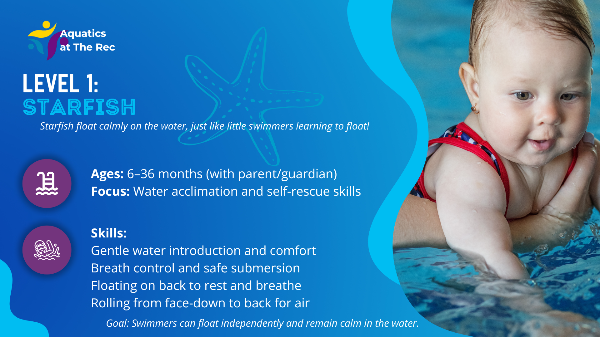 Building independence and confidence in the water, while strengthening the swim-float-swim skill