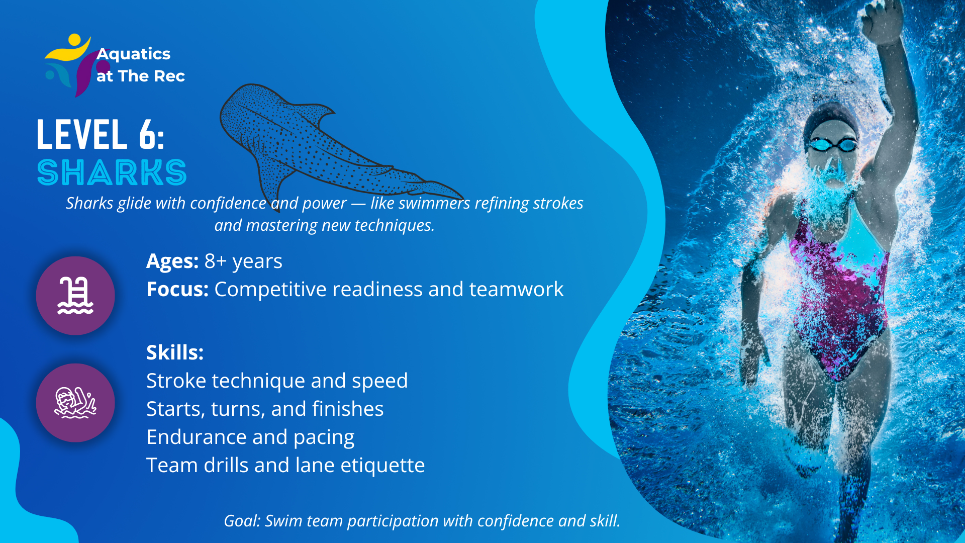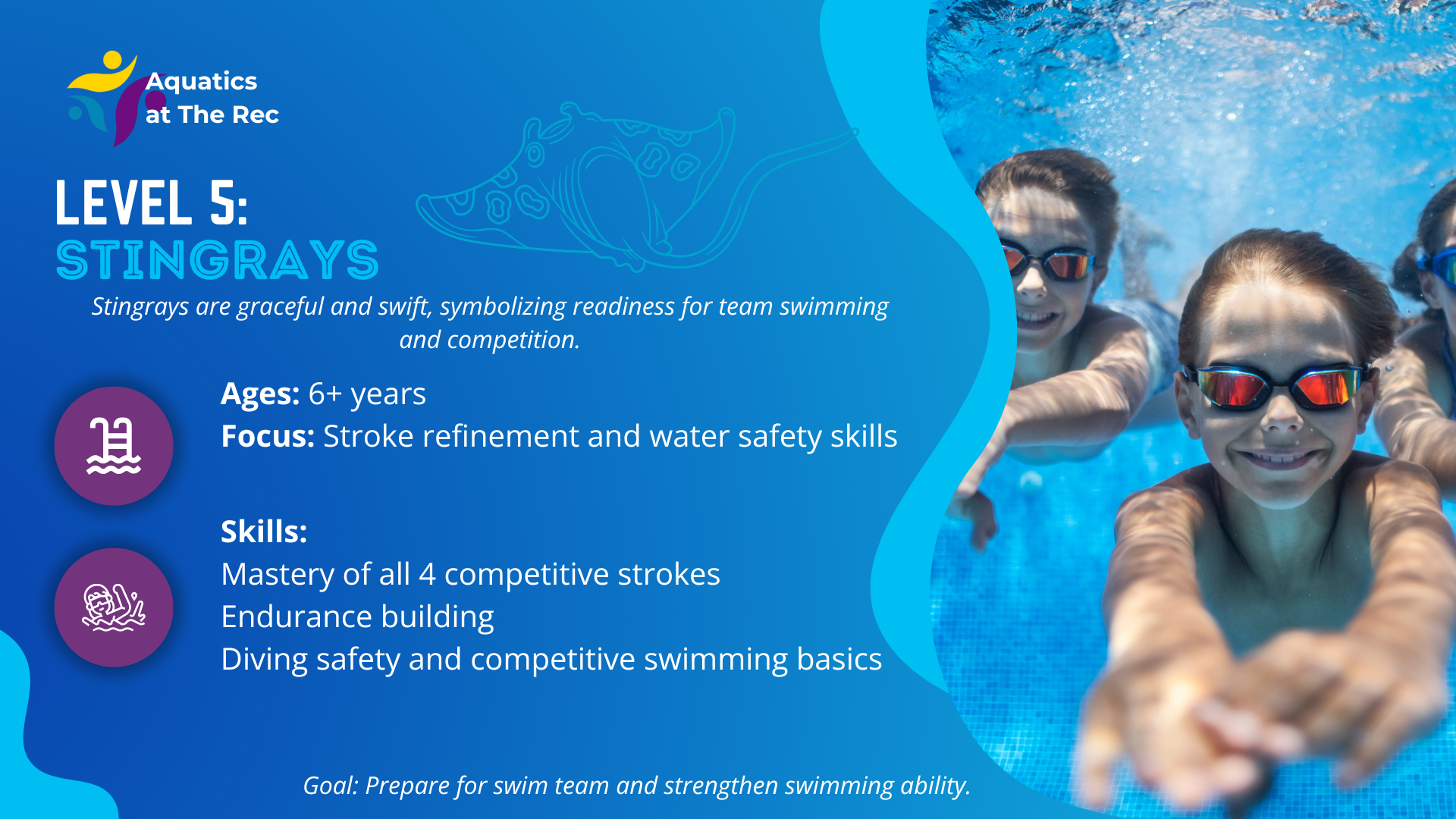 Stroke refinement and water safety skills, master of all 4 competitive strokes